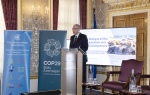 В своем выступлении специальный посланник Министерства иностранных дел Великобритании по малым островным государствам Тим Хеммингс коснулся достижений прошлогодней конференции COP29 и отметил, что, учитывая масштаб проблем, вызванных колебаниями уровня моря, британский МИД реализовал ряд проектов в поддержку решения вопросов в этом направлении. Он назвал заслуживающим одобрения тот факт, что Председательство COP29 организовало мероприятие по этой теме в Лондоне совместно с Содружеством наций.