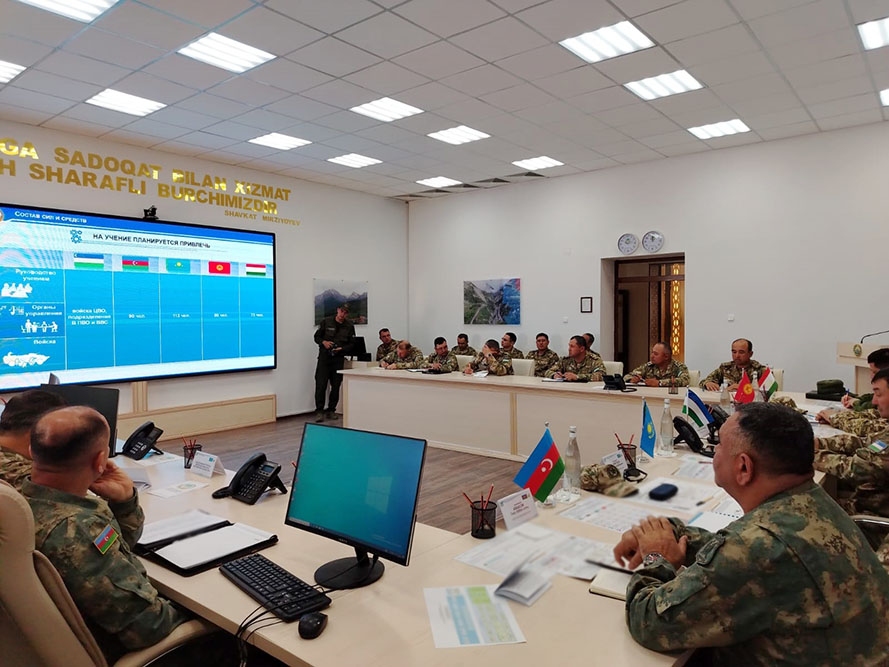 Руководящий состав привлечённых к учениям контингентов из Азербайджана, Казахстана, Таджикистана, Кыргызстана и Узбекистана ознакомился с поставленными задачами.
