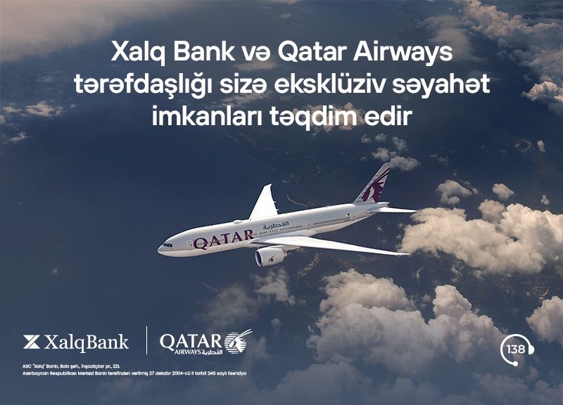 Халг Банк запускает новую кампанию с "Qatar Airways", которая в 9-й раз была выбрана лучшей авиакомпанией мира по версии премии «Skytrax World Airline» в 2025 году. В рамках кампании, начиная с сегодняшнего дня, выбранные авиабилеты "Qatar Airways" можно приобрести со скидкой 5 % при оплате любой платежной картой Mastercard или Visa, выпущенной Халг Банком. Чтобы воспользоваться скидкой, достаточно перейти по ссылке https://www.qatarairways.com/en-az/offers/cug/xalq-bank.html , выбрать направление полёта и оплатить билет картой Халг Банк. Промокод QRXALQ25 применяется автоматически. Отметим, что скидка действует на рейсы бизнес и эконом-класса. В кампании участвуют все платежные карты Visa и Mastercard, выпущенные Халг Банком.