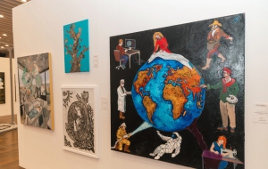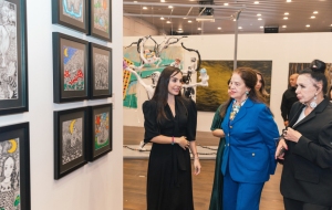 После выступлений Лейла Алиева, Арзу Алиева и участники ознакомились с произведениями, представленными на выставке.
