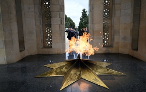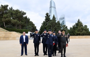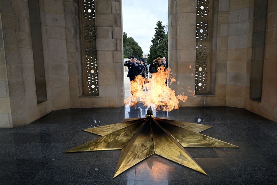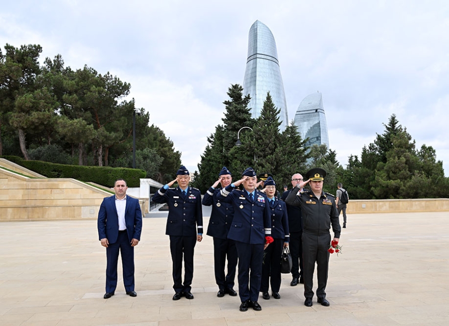Сначала корейская делегация посетила Аллею шехидов, где возложила цветы на могилы шехидов и к мемориалу «Вечный огонь», почтив светлую память героев.