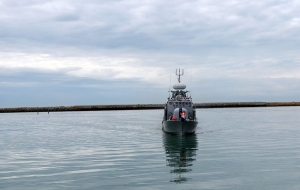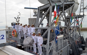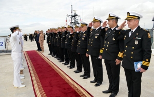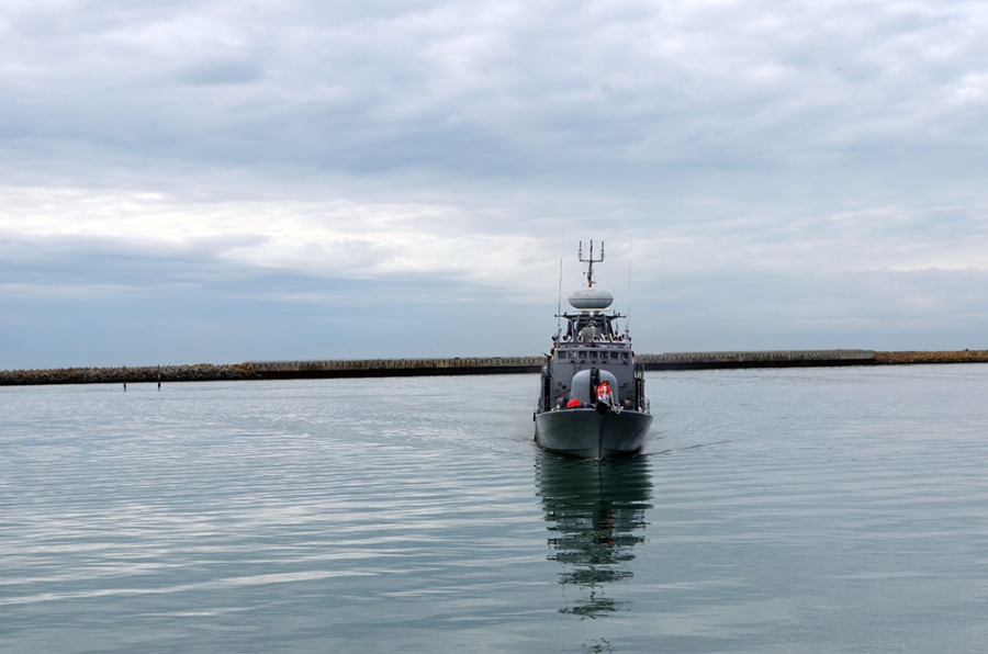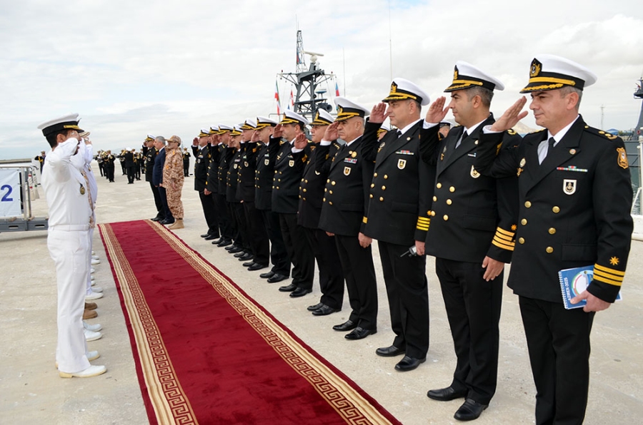 Состоялась торжественная церемония встречи кораблей. В мероприятии принимали участие командование ВМС Азербайджана и другие официальные лица.