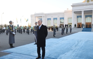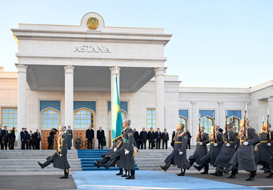 Главу государства встретил Президент Республики Казахстан Касым-Жомарт Токаев.