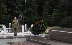 Президент Ильхам Алиев возложил венок к памятнику великому лидеру Гейдару Алиеву.