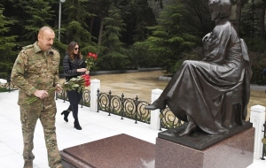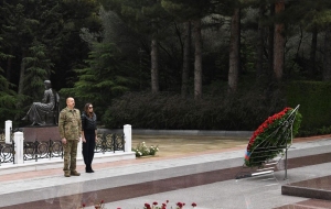 Затем Президент Ильхам Алиев и Первая леди Мехрибан Алиева прибыли на Шехидляр хиябаны. Глава государства и Первая леди почтили память отважных сынов Родины, отдавших жизнь за суверенитет и территориальную целостность Азербайджана, возложили цветы к их могилам.