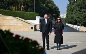 Как сообщает Trend, Президент Ильхам Алиев и Первая леди Мехрибан Алиева почтили светлую память доблестных сынов Родины, отдавших жизнь в борьбе за свободу, независимость и территориальную целостность Азербайджана.