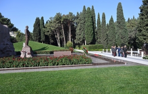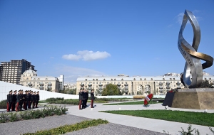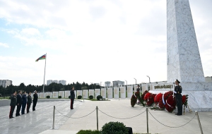 Под аккомпанемент военного оркестра здесь был исполнен Государственный гимн Азербайджанской Республики, минутой молчания была почтена память шехидов, возложены цветы на их могилы.