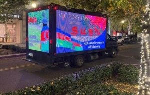 Как сообщает Trend, на улицах Вашингтона, Нью-Йорка, Атланты, Детройта и Бостона появились автомобили с LED-экранами, на которых транслируются надписи: "С гордостью и отвагой - 5 лет", "Победа Азербайджана - торжество справедливости", "Карабах - земля мира и надежды", "Во имя прочного мира на Кавказе" и другими.