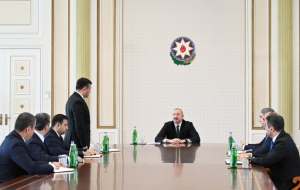 БАКУ /Trend/ - 12 ноября Президент Азербайджанской Республики Ильхам Алиев принял новоназначенных полномочного представителя Президента Азербайджанской Республики в Нахчыванской Автономной Республике и глав ИВ ряда районов.