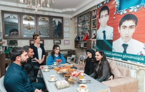 Как сообщает Trend, в рамках поездки Лейла Алиева сначала посетила семью шехидов братьев Ахмедовых, отдавших свою жизнь за Родину. Она почтила память шехидов, побеседовала с их матерью Севиндж Ахмедовой, поинтересовалась жизнью и боевым путем ее героических сыновей, а также заботами и потребностями семьи.