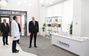 БАКУ /Trend/ - Президент Азербайджанской Республики Ильхам Алиев принял участие в открытии в поселке Хокмали Абшеронского района предприятия по производству лекарственных препаратов ООО Scandens Pharmaceutical Industries Ltd.