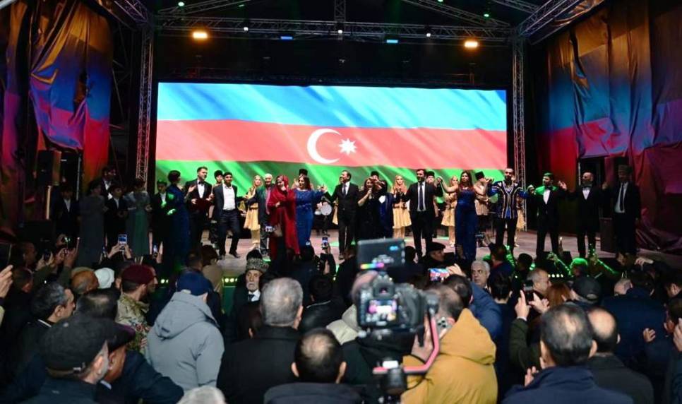 Празднование продолжилось масштабной концертной программой. На открытой сцене собрались жители, гости города и вернувшиеся в родные края кяльбаджарцы. После исполнения Государственного гимна память шехидов почтили минутой молчания.
