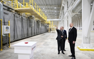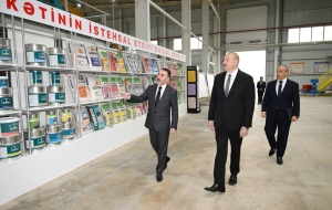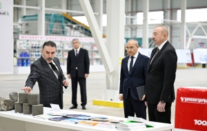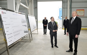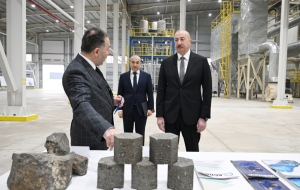 БАКУ/Trend/ - Президент Азербайджанской Республики Ильхам Алиев принял участие в открытии завода по производству минеральной каменной ваты AZWOOL компании «Матанат-А» в Гарадагском районе Баку.