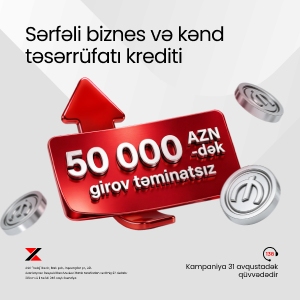 В рамках кампании физические лица-предприниматели и юридические лица могут получить бизнес-кредит до 50 000 AZN сроком до 24 месяцев без залогового обеспечения. Кроме того, на период действия кампании по обеспеченным кредитам на сумму до 300 000 AZN и сроком до 48 месяцев не требуется страхование залога . Данные условия создают дополнительную финансовую поддержку для увеличения оборотных средств и расширения предпринимательской деятельности.