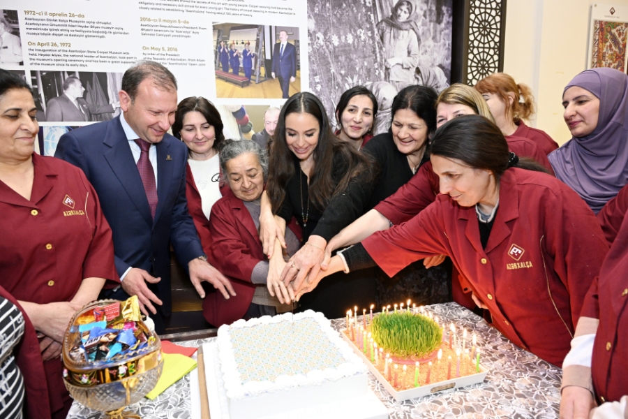 Напомним, что в этом месяце при участии Лейлы Алиевой состоялась церемония срезки со станка круглого ковра ручной работы диаметром 22,17 метра, изготовленного для первого этажа Шушинской мечети и не имеющего аналогов в мировой истории ковроткачества. Это уникальное произведение искусства было создано по мотивам Карабахской группы ковров и на основе орнаментов «Хатаи». В процессе изготовления ковра принимали участие 150 ткачих, на него было нанесено примерно 60 миллион петель.