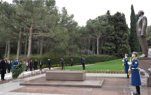 Также были возложены цветы к могилам выдающегося государственного и общественного деятеля Азиза Алиева и талантливого врача Тамерлана Алиева.