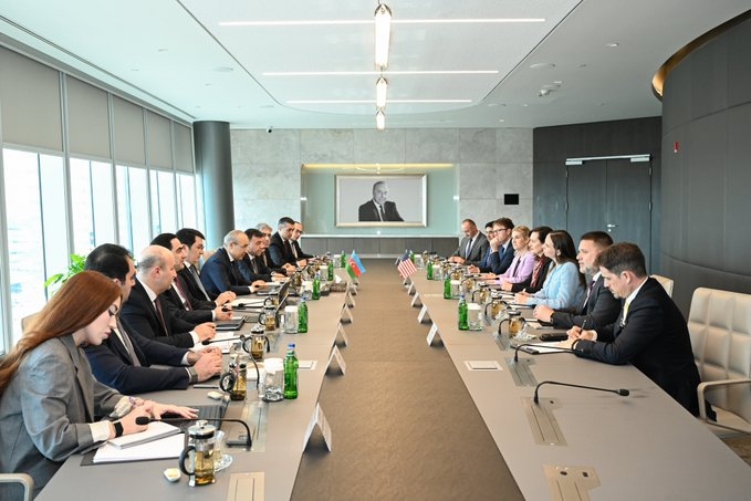 "В ходе встречи с делегациями во главе с главным советником Бюро по экономическим, энергетическим и бизнес-вопросам Госдепартамента США (StateDept) Ребеккой Нефф и менеджером по странам Европы и Евразии Агентства США по торговле и развитию (USTDA) Сарой Леминг было подчеркнуто, что отношения между Азербайджаном и США достигли уровня стратегического партнёрства, а также отмечена благоприятная среда для укрепления экономических связей", - говорится в информации.