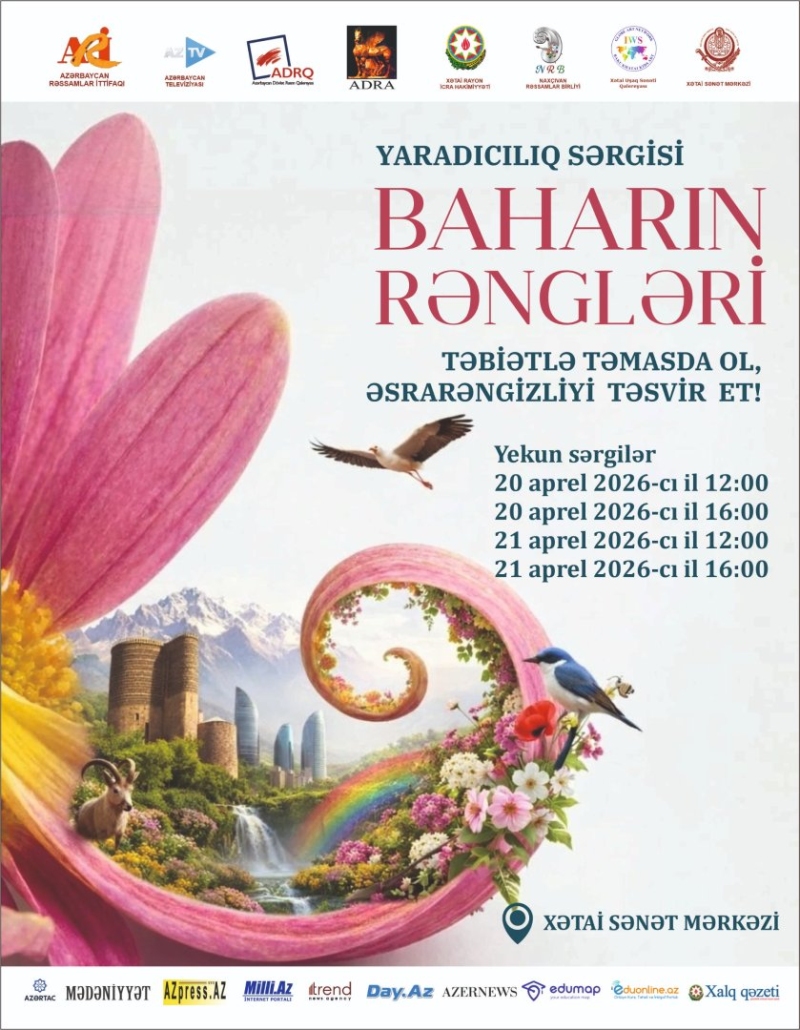 БАКУ /Trend Life / - 20 и 21 апреля в 12:00 и 16:00 в Хатаинском центре искусств состоится открытие творческой выставки "Краски весны" (Baharın rəngləri), которая пройдет под девизом "Соприкоснись с природой, изобрази её загадочность!" (Təbiətlə təmasda ol, əsrarəngizliyi təsvir et!), сообщили Trend Life оргн