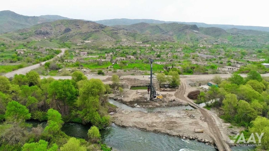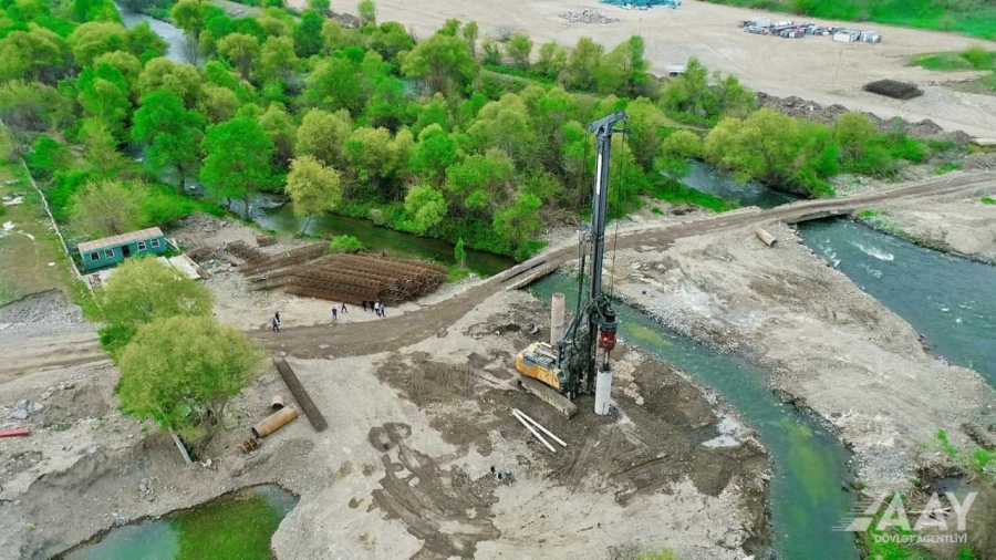 В настоящее время на четырехпролетном мосту длиной 122,4 метра, построенном на 2,5-м километре дороги, выполняются работы по установке свай и бетонированию. На 21-м километре дороги, где будет построен двухпролетный мост длиной 66 метров, ведется подготовка к установке свай.