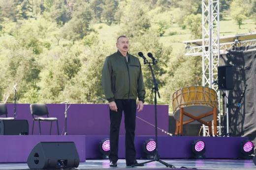 Президент Азербайджана Ильхам Алиев и первая леди Мехрибан Алиева принимают участие в международном фольклорном фестивале «Харыбюльбюль» в Шуше, сообщает официальный сайт главы государства.