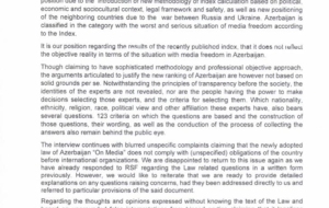 В письме отмечается создание Агентства развития медиа на основании соответствующего указа Президента Азербайджанской Республики, углубление реформ в этой сфере, реализация крупных проектов с участием частного сектора в сотрудничестве со СМИ, усиление экономической самостоятельности медиа-субъектов, а также выражается сожаление в связи с тем, что эти позитивные инициативы не учитываются при составлении соответствующих международных рейтингов.
