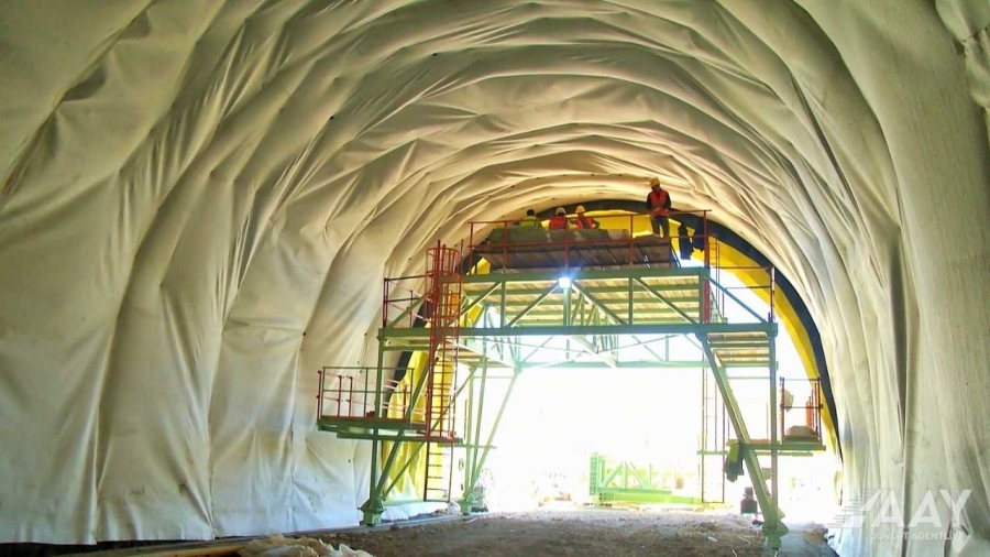 В тоннеле Т1 протяженностью 1 019 метров завершены буровые работы и ведется бетонирование.
