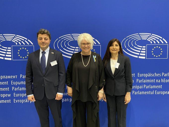 «Вместе с моей коллегой, депутатом Милли Меджлиса Севиль Микаиловой провели конструктивную дискуссию с депутатом Европарламента Мариной Кальюранд. Надеемся на укрепление сотрудничества между Милли Меджлисом и Европарламентом», - написал Гянджалиев.