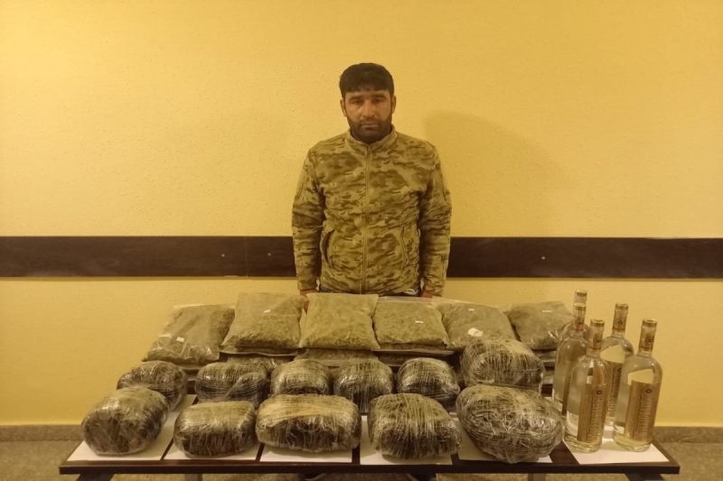 При досмотре автомобиля, которым управлял житель Физулинского района Мамедов Нахид Ширзад оглу, 1987 года рождения, были обнаружены и изъяты 11 килограммов 885 граммов марихуаны и пять бутылок алкогольного напитка Millionaire.
