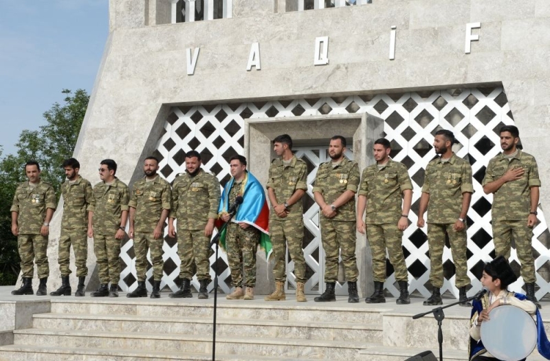 Во время исполнения композиции İgidlərin sözü поэты - участники Отечественной войны выступили с речами под мугам.