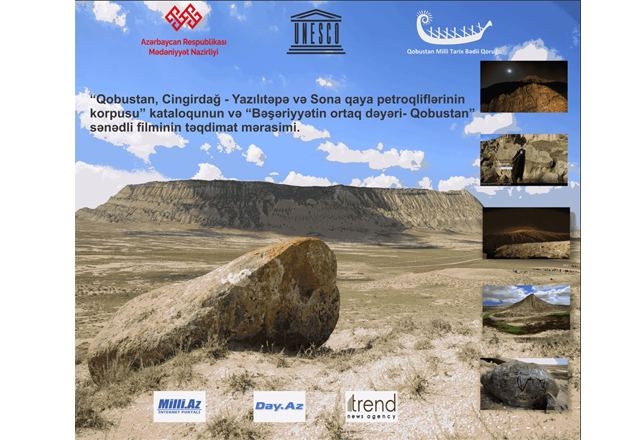 Третьего августа в Park inn Hotel Baku состоится презентация документального фильма Bəşəriyyətin ortaq dəyəri - Qobustan ("Общая ценность человечества – Гобустан") и каталога Qobustan - Cingirdağ-Yazılıtəpə və Sona qaya petroqliflərinin korpusu ("Мост петроглифов Гобустан - Джингирдаг-Язылытепе и Сона-гая"), сообщили Trend Life организаторы мероприятия.
