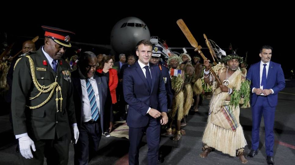Макрон прибыл в Вануату накануне после завершения его поездки в Нумеа - административный центр Новой Каледонии.