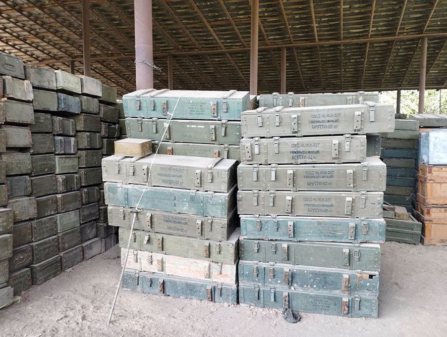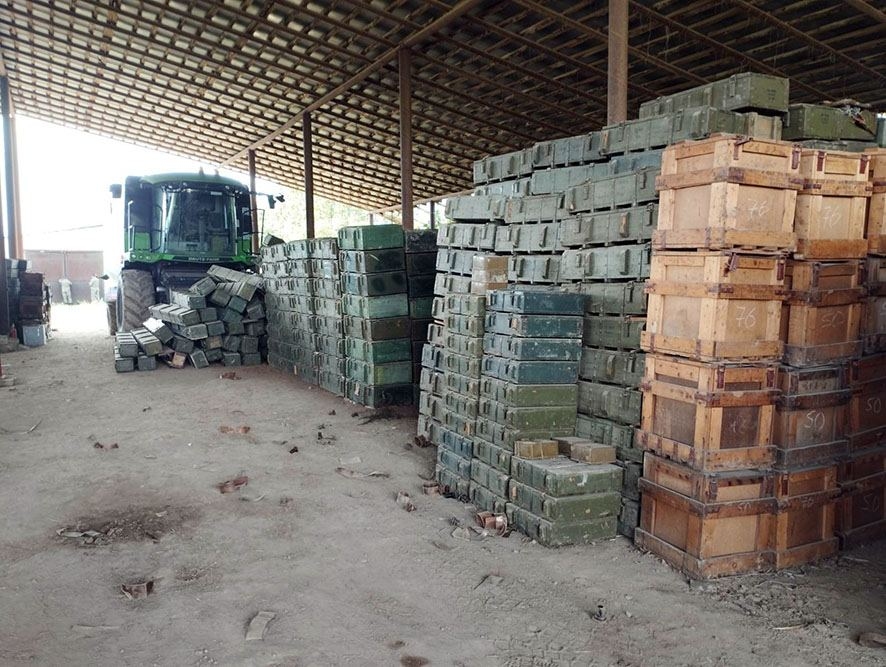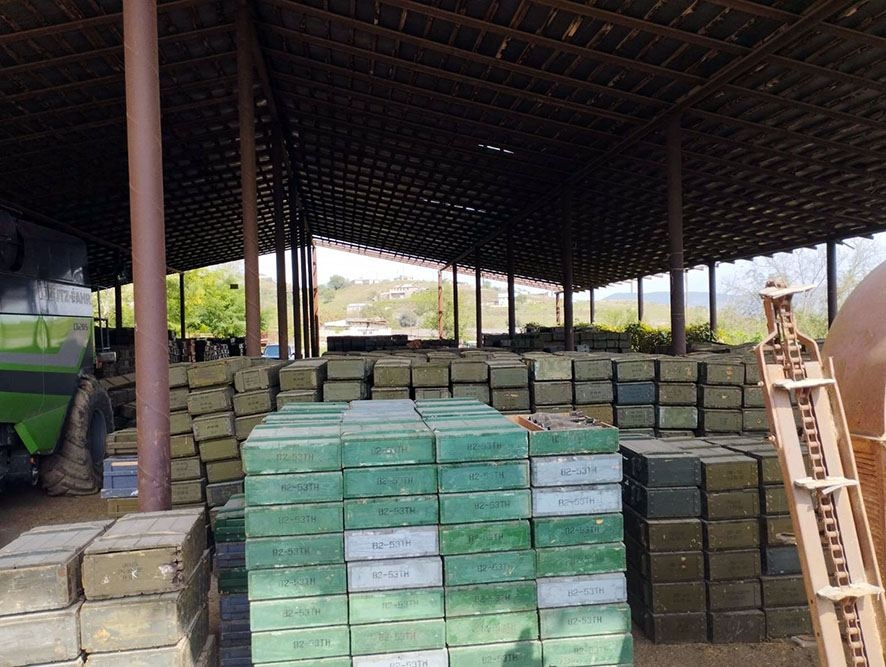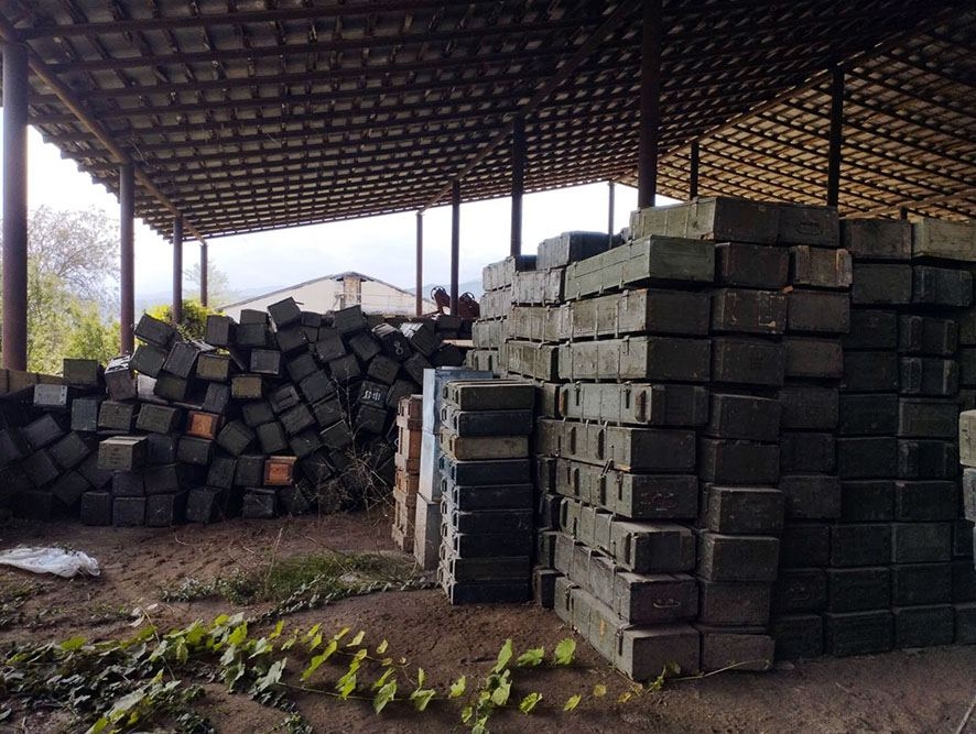 Как сообщает Trend со ссылкой на министерство обороны Азербайджана, на складе с большим количеством ракет, артиллерийских снарядов и мин также были обнаружены боеприпасы различного калибра.