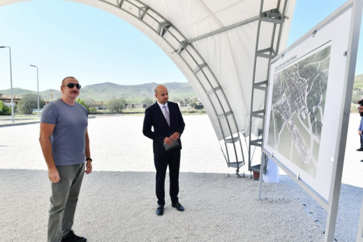 Как сообщает сайт главы государства, Алиев, в частности, заложил фундамент села Алибейли.
