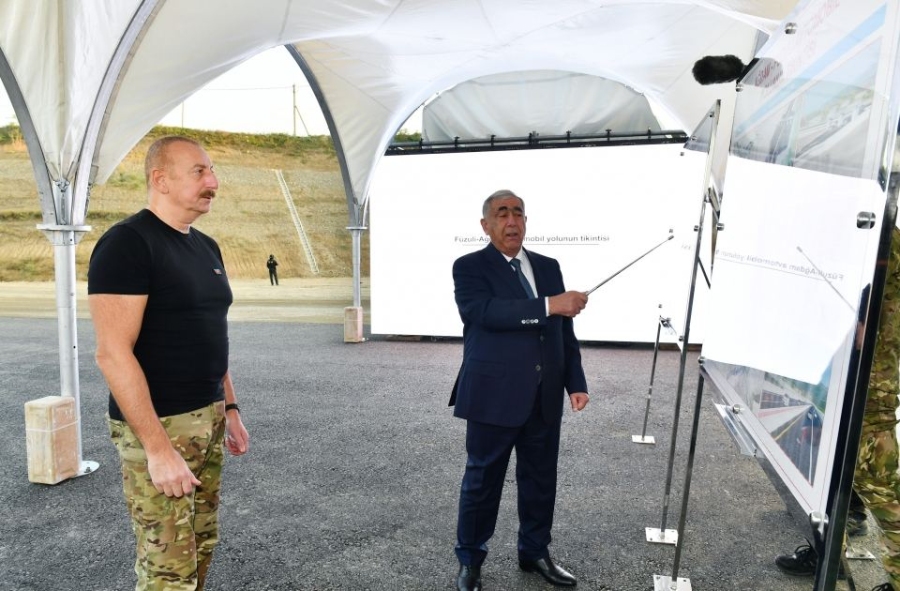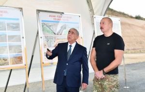 15 октября Президент Азербайджанской Республики Ильхам Алиев ознакомился с ходом строительства автодороги Агдам-Физули.