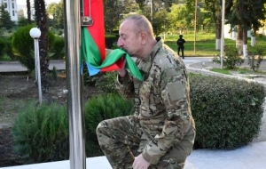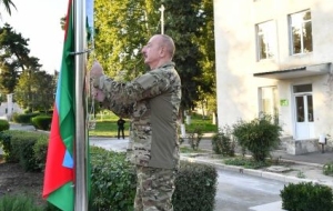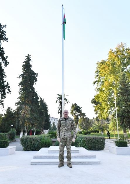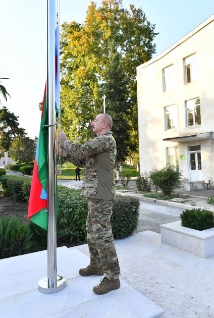 БАКУ/Trend/ - 15 октября Президент Азербайджанской Республики Ильхам Алиев поднял Государственный флаг Азербайджанской Республики в городе Ходжавенд.
