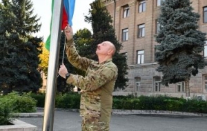 15 октября Президент Азербайджана Ильхам Алиев поднял Государственный флаг Азербайджанской Республики в городе Ханкенди и выступил с речью.