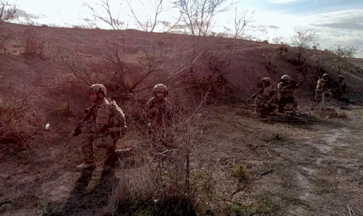 "Преодолевая препятствия, которые могут возникнуть на поле боя, группа в соответствии с планом совершила внезапный налет на пункт дислокации условного противника. Были выведены из строя пункты командного управления, узлы связи, обезврежена живая сила противника", - сообщает оборонное ведомство Азербайджана.