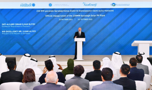 «Наша повестка возобновляемой энергетики не ограничивается солнечными или ветряными электростанциями. В настоящее время мы активно развиваем наш потенциал гидроэнергетики на освобожденных от оккупации три года назад территориях Карабаха и Восточного Зангезура», - сказал Алиев в четверг на церемонии открытия Гарадагской солнечной электростанции мощностью 230 МВт