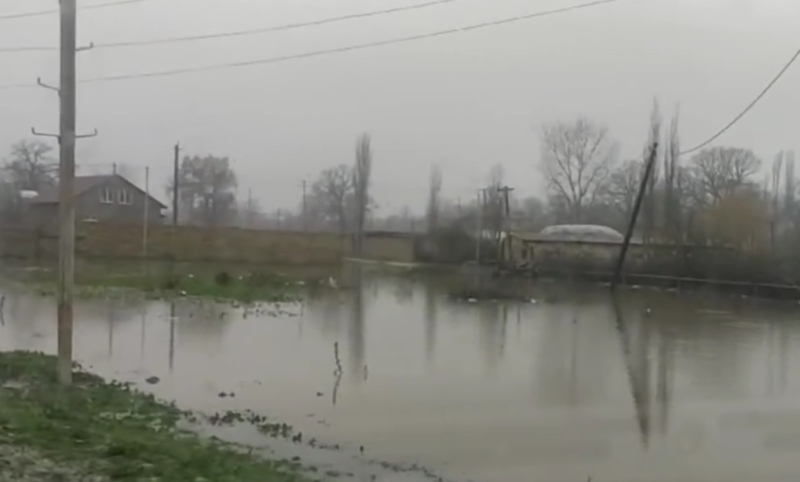 Продолжавшиеся несколько дней в Хачмазском районе осадки привели к тому, что селевые потоки затопили улицы и дворы в двух селах.