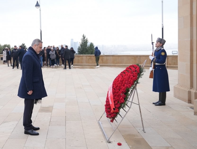 Как сообщает в четверг Trend, сначала в Аллее почетного захоронения Хакан Фидан почтил память общенационального лидера азербайджанского народа, архитектора и основателя современного независимого Азербайджанского государства Гейдара Алиева и возложил венок к его могиле.