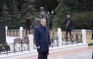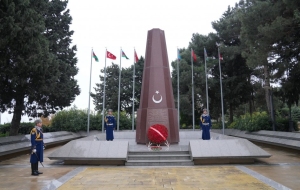 Затем состоялось посещение памятника "Тюркское шехидство", воздвигнутого в память о турецких солдатах-шехидах. К памятнику были возложены венок и букеты цветов.