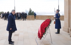Также были посещены могилы шехидов, отдавших свои жизни в борьбе за независимость и территориальную целостность Азербайджана, возложен венок перед монументом "Вечный огонь".