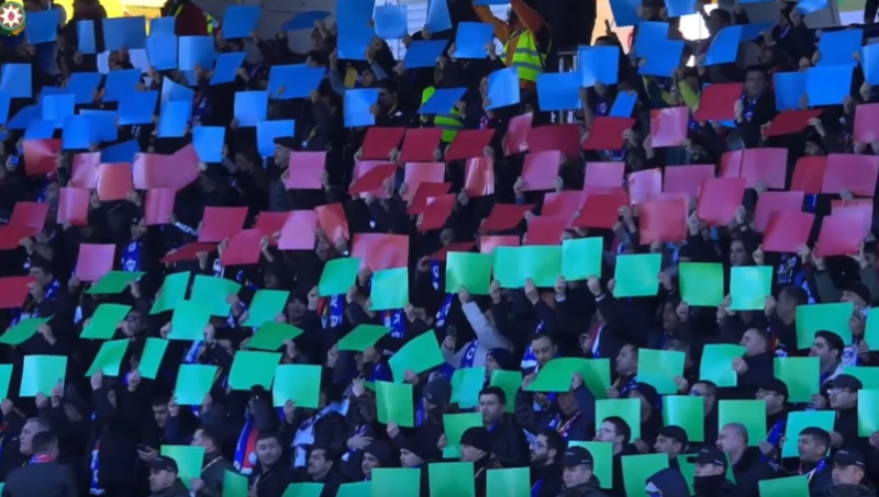 Перед началом исторического матча прозвучал государственный гимн Азербайджанской Республики.