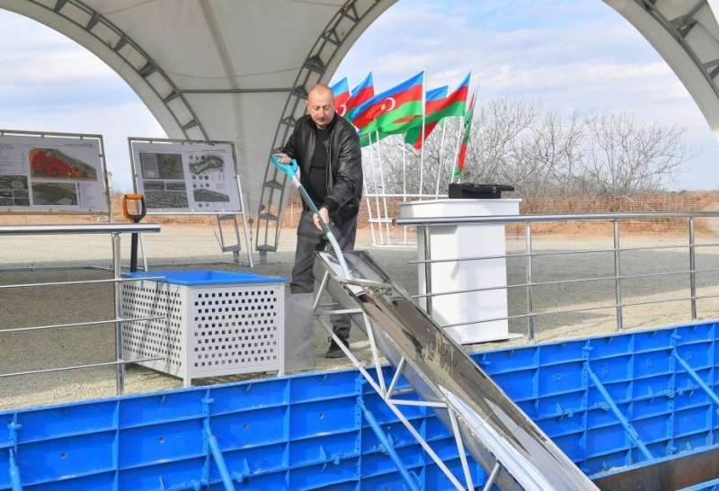 Президент Азербайджанской Республики Ильхам Алиев принял участие в церемонии закладки фундамента села Баш Гервенд Агдамского района.