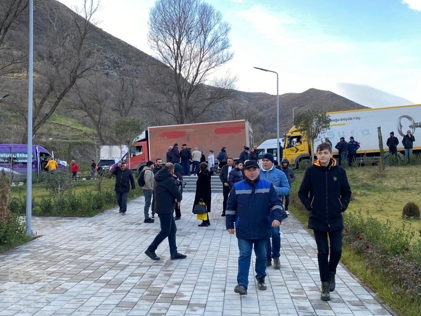 Сегодня утром семьи бывших вынужденных переселенцев, выехавшие из Гарадагского района Баку в Лачин, прибыли в родное село Забух.