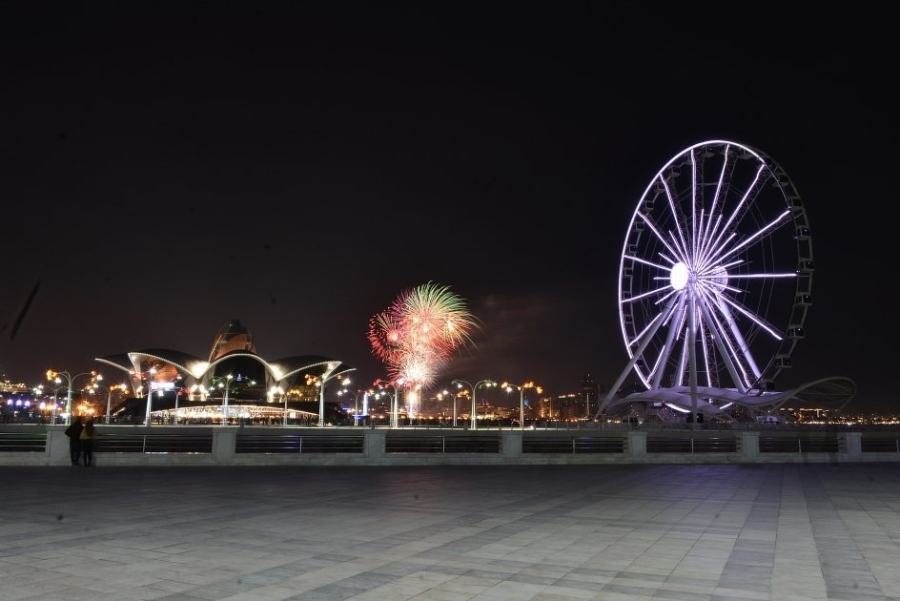 Бакинцы и гости города, собравшиеся на Приморском бульваре и центральных улицах столицы, с большим интересом наблюдали за праздничным фейерверком, организованным Исполнительной властью города Баку.
