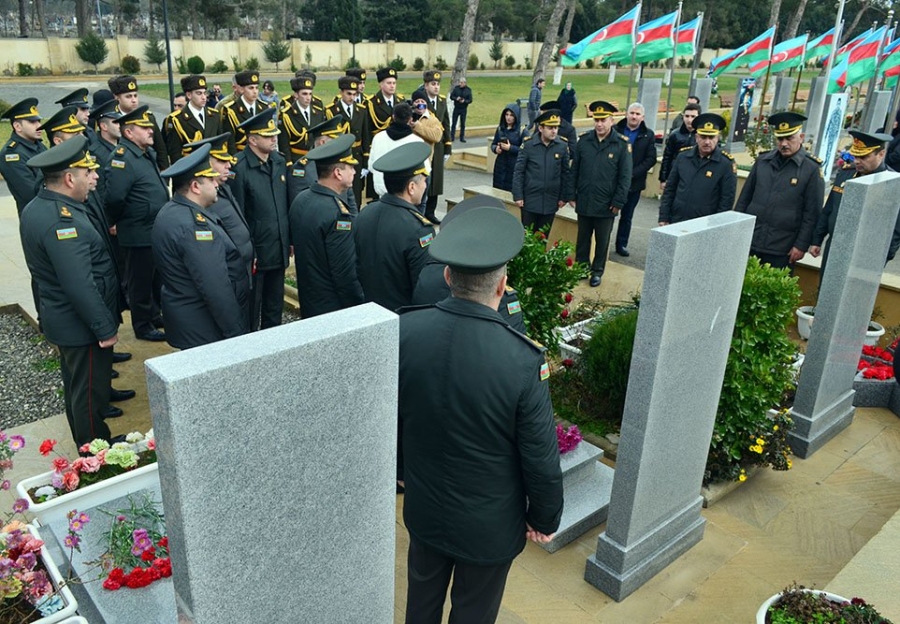 Об этом Trend сообщает во вторник со ссылкой на Миноборрны в память общенационального лидера азербайджанского народа Гейдара Алиева и шехидов, военный оркестр исполнил Государственнывй гимн Азербайджанской Республики.