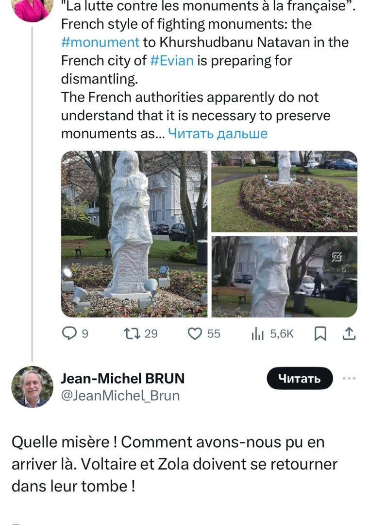 «Какое несчастье! Как мы дошли до этой точки? Вольтер и Золя, и особенно Александр Дюма, который так восхищался Натаван, должно быть, в гробу переворачиваются!» - написал он в соцсети “X”.