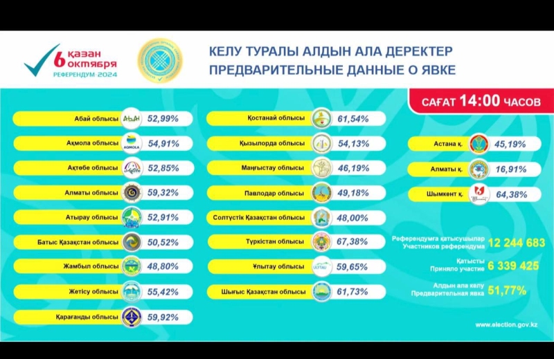 АСТАНА /Trend/ - Явка на референдуме по строительству атомной электростанции в Казахстане по состоянию на 14:00 по местному времени составила 51,77%.