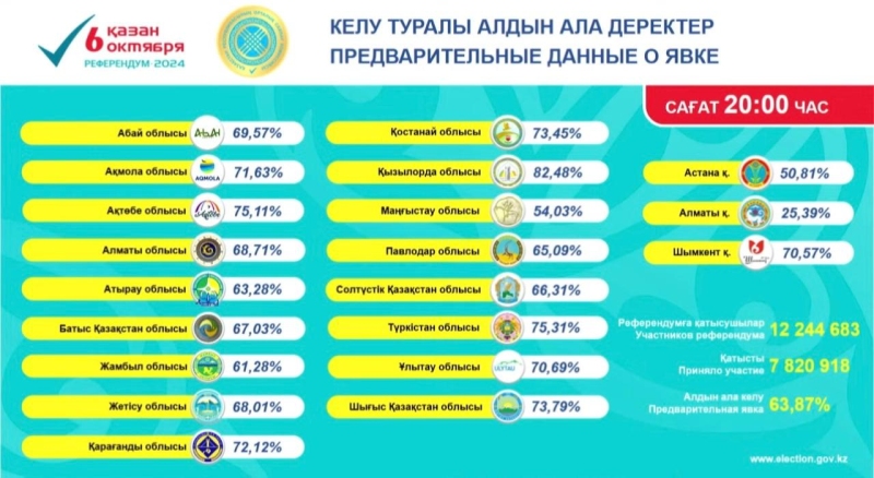 АСТАНА /Trend/ - Явка на референдуме по строительству атомной электростанции в Казахстане по итогам голосования составила 63,87%.